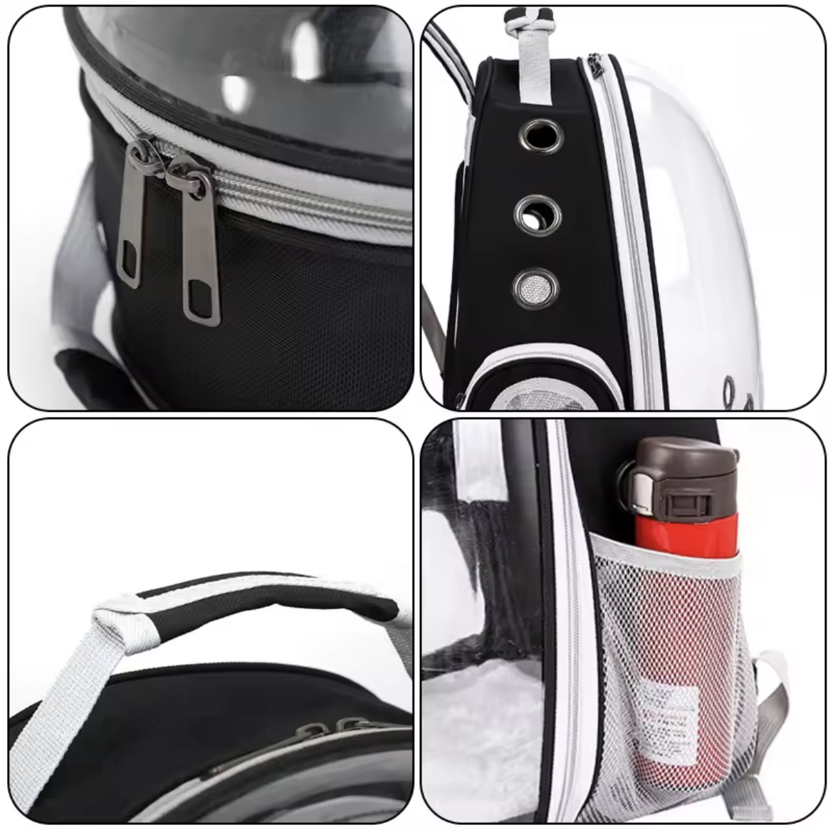 👀 Diseño transparente tipo cápsula: Vista panorámica de 180° que reduce la ansiedad de tu mascota al permitirle ver el exterior.